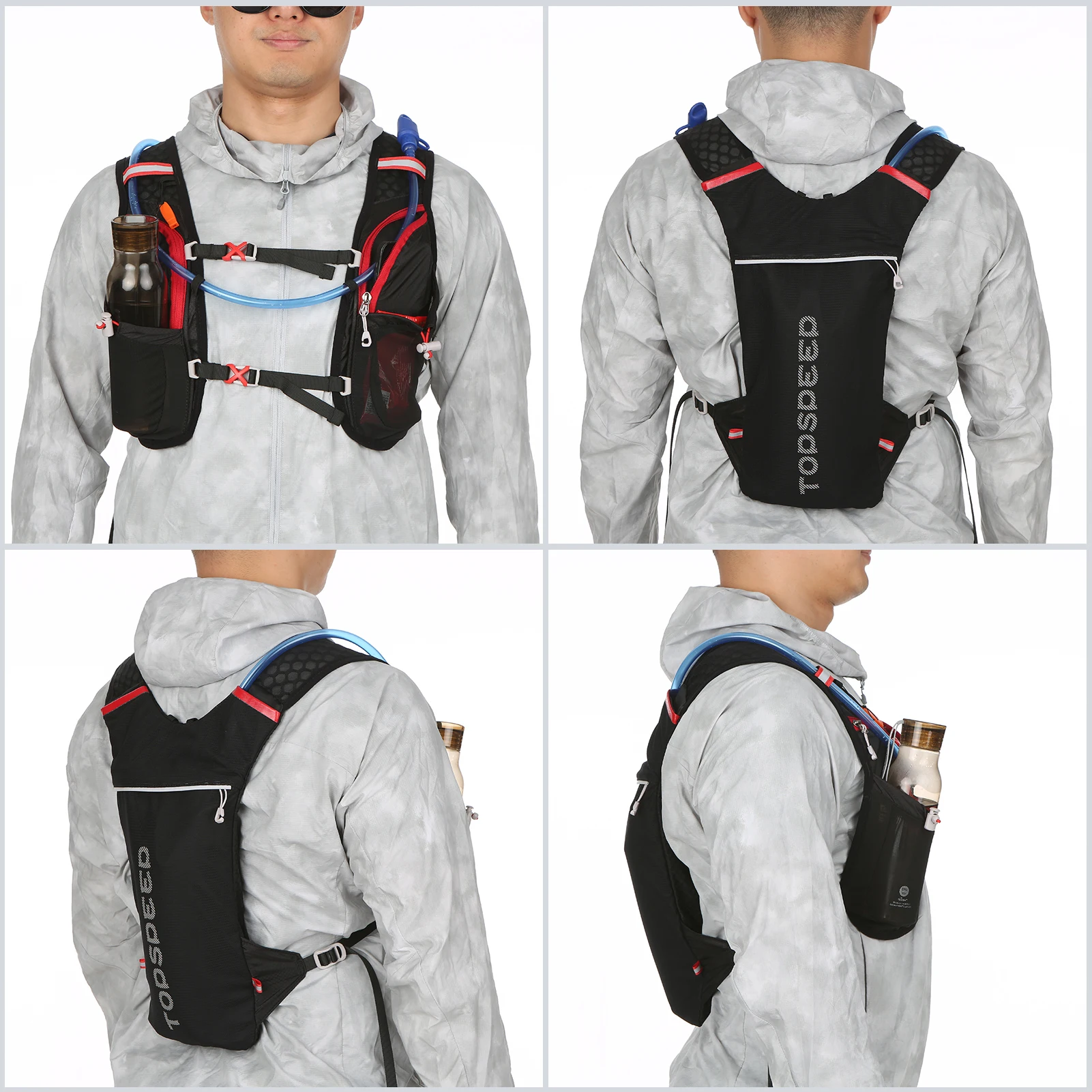 WATER SUPPLEMENT--Environmental TPU hydration bladder equipped, pressure-tolerant and leak-proof. Drinking the water by the tube directly without taking your running vest off or stopping your steps.
