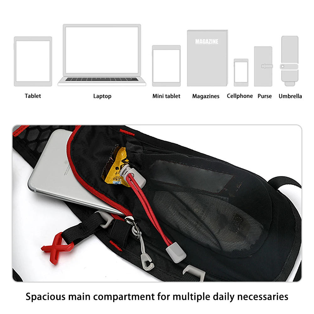 This is a 5L professional Cycle backpack with 2L water bladder,capable for storing most necessaries for outdoor activities, suitable for riding, running and mountaineering etc.